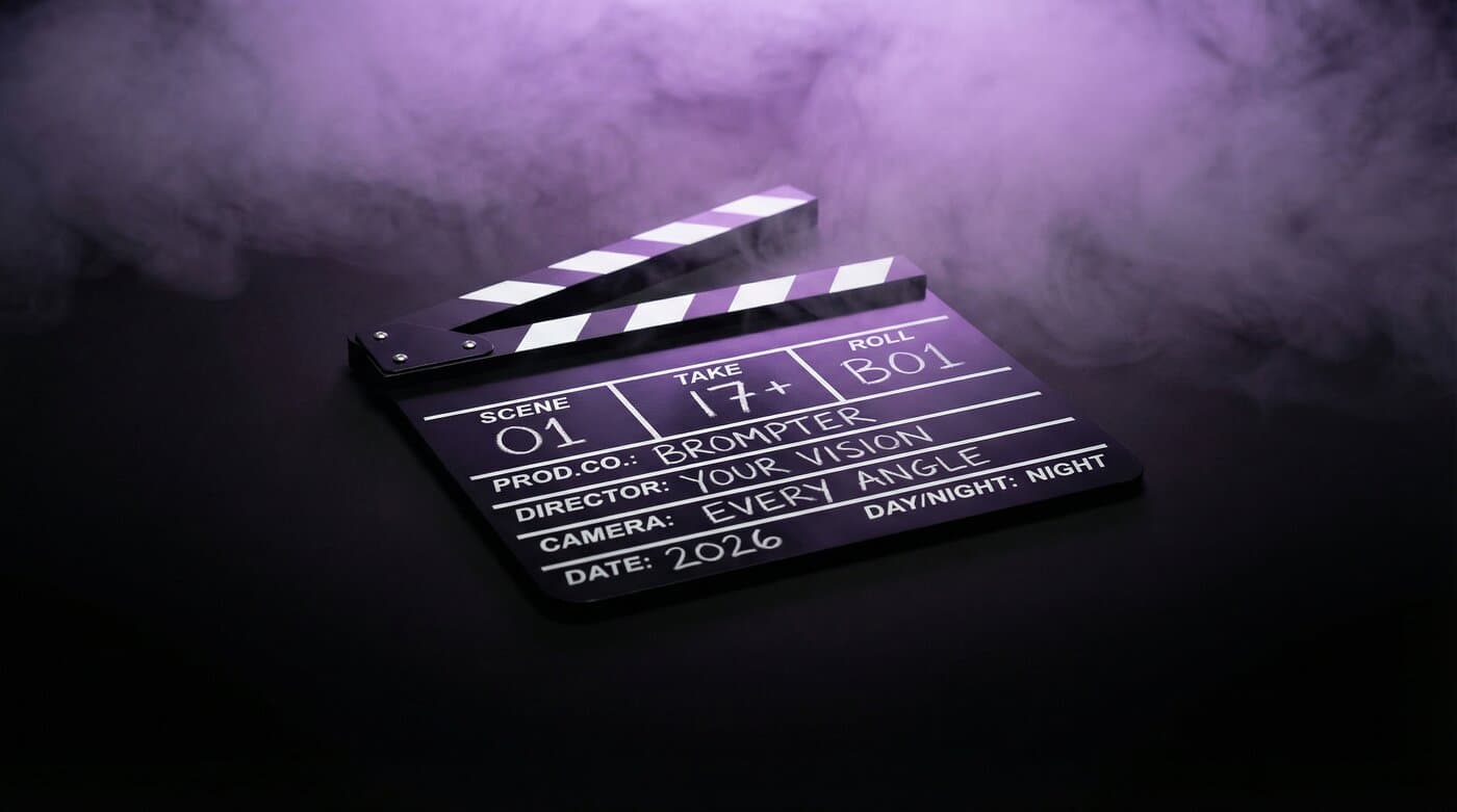 Wybieraj spośród 17+ profesjonalnych parametrów — kąty kamery, oświetlenie, klisze filmowe, obiektywy. Brompter buduje prompt. Ty klikasz generuj.